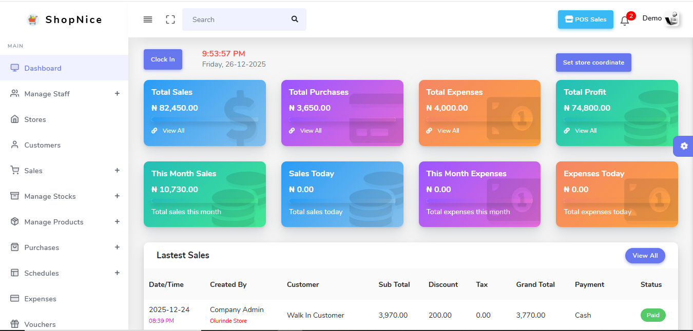 Track stock levels, manage suppliers, monitor sales, and make informed decisions — all from one powerful dashboard.